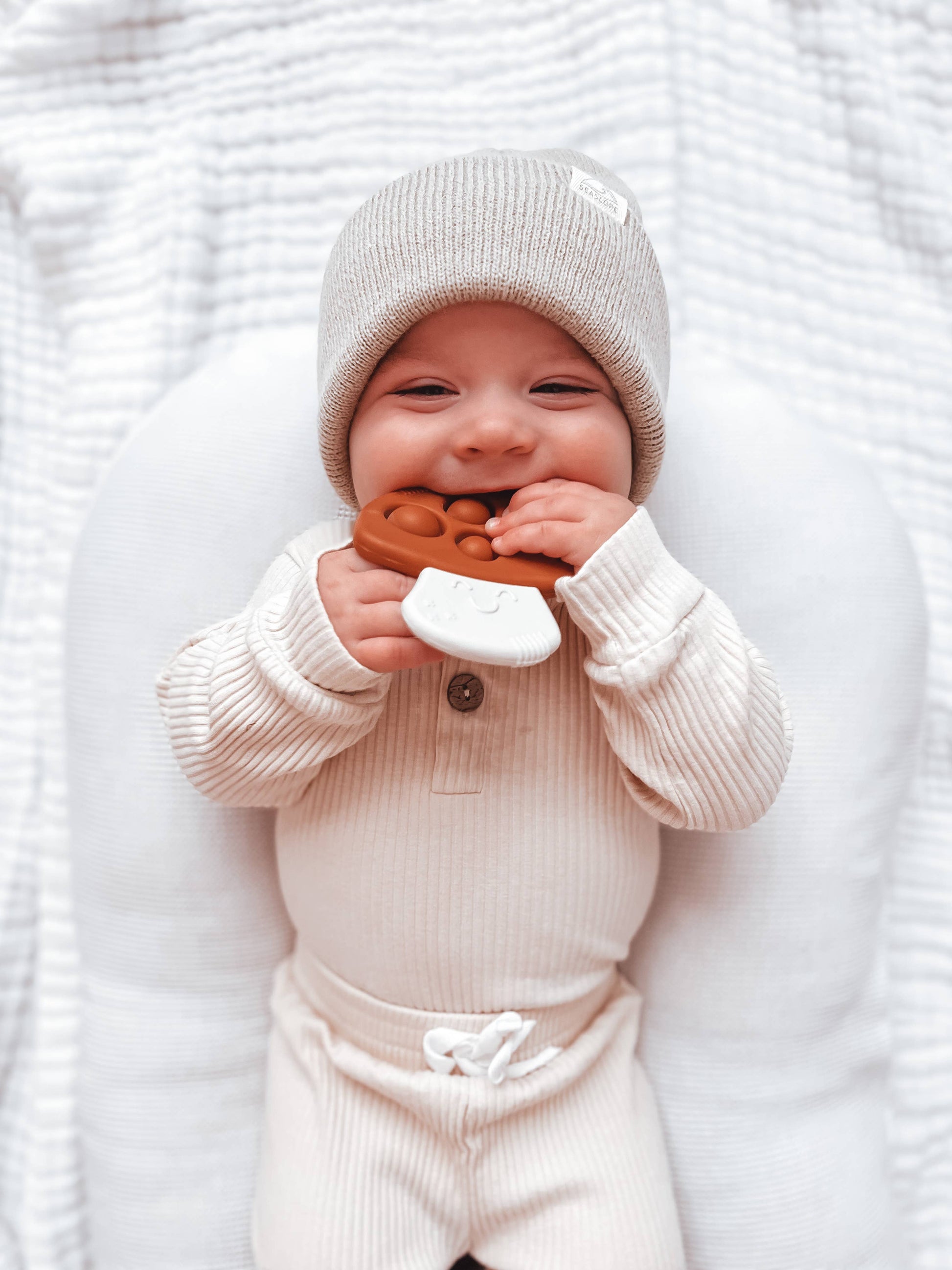 Chew on this! A pop of personality: a teething bestie & sensory toy all-in-one! Our Itzy Pop™ engages baby with popping sounds & movement while the raised textures gently soothe sore gums. Pop it in your bag or clip it for easy, fun, and safe relief while on-the-go.